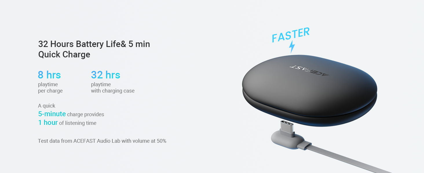 32 Hours Battery Life: 8 hours per charge, up to 36 hours with the case, plus quick-charging.