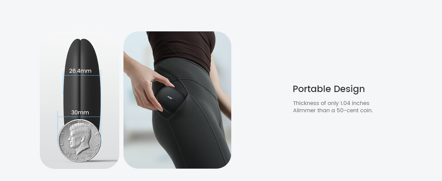 Ultra-Slim & Portable: 1.04 inches thick, sweat-resistant matte finish, perfect for workouts and travel.