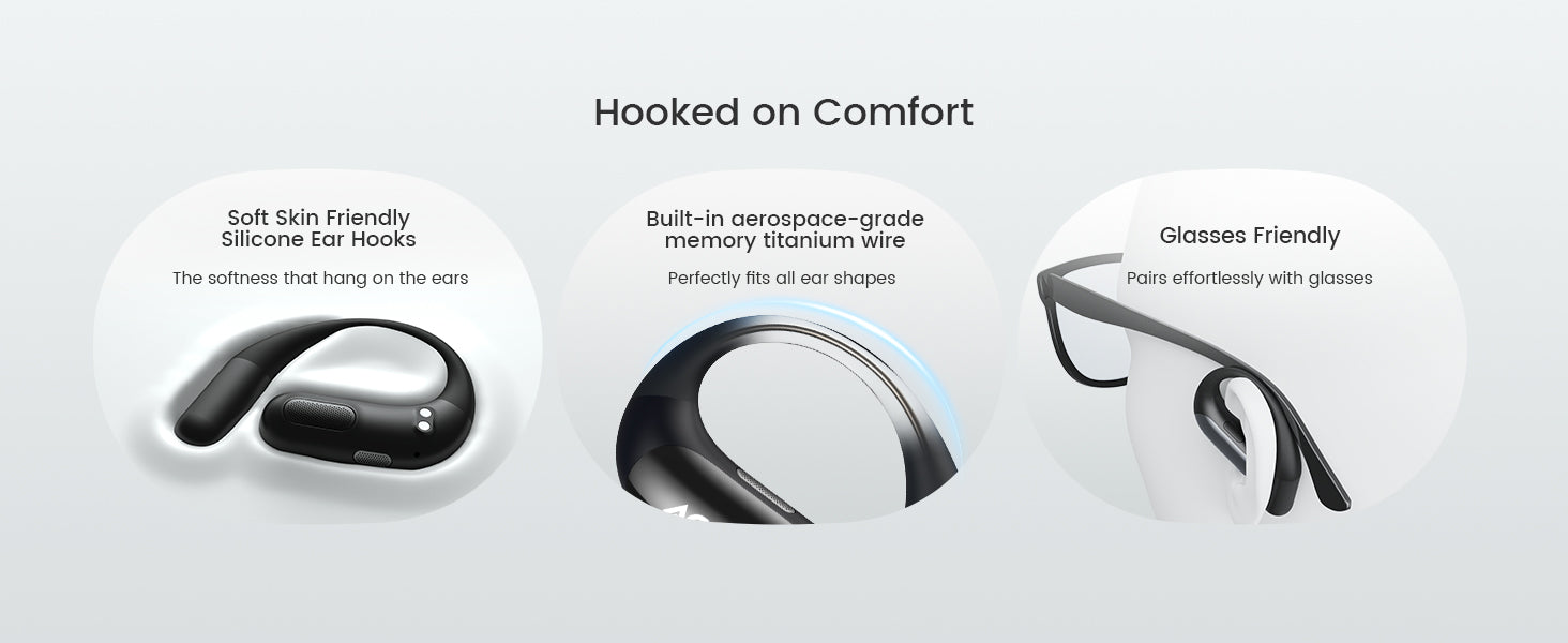 Open-Ear Comfort: Just 0.25oz, with silicone and titanium hooks for a secure, all-day fit.