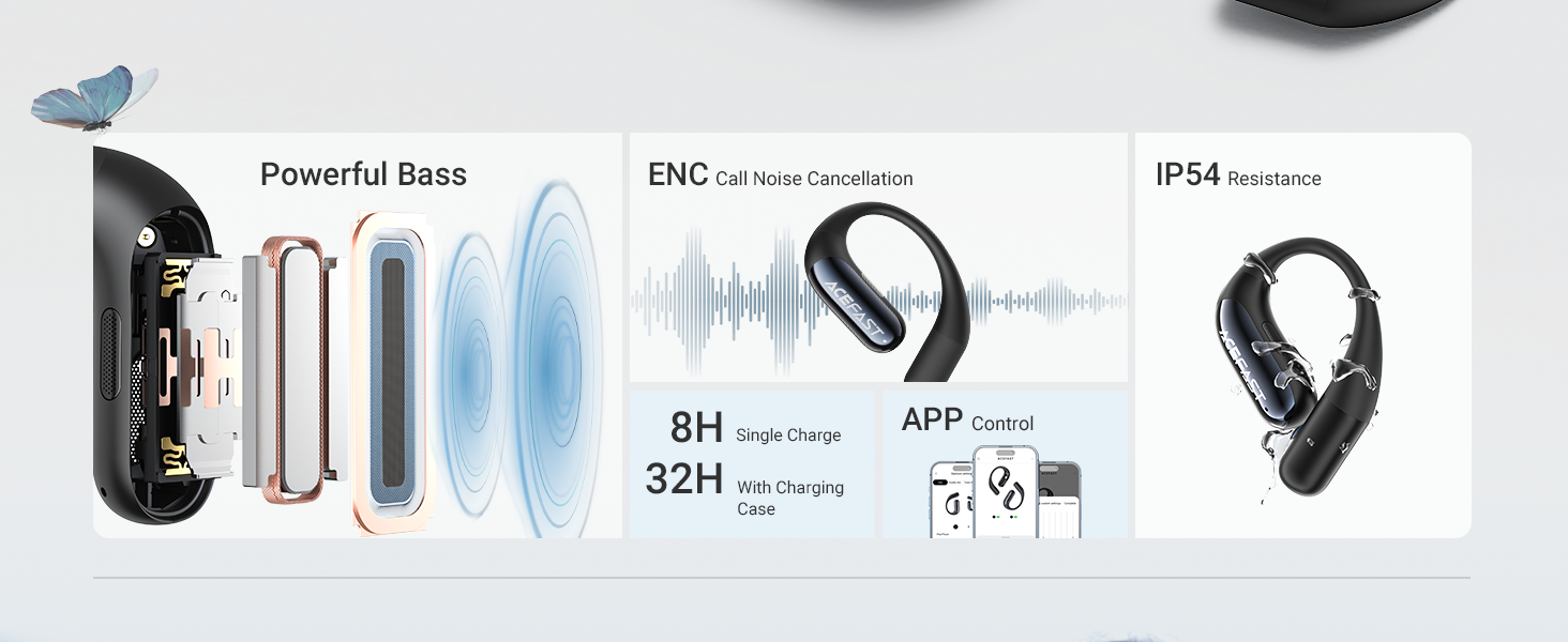 Superior Sound Quality: 20mm drivers and BassPulseAudio deliver deep bass and customizable EQ via the ACEFAST App.