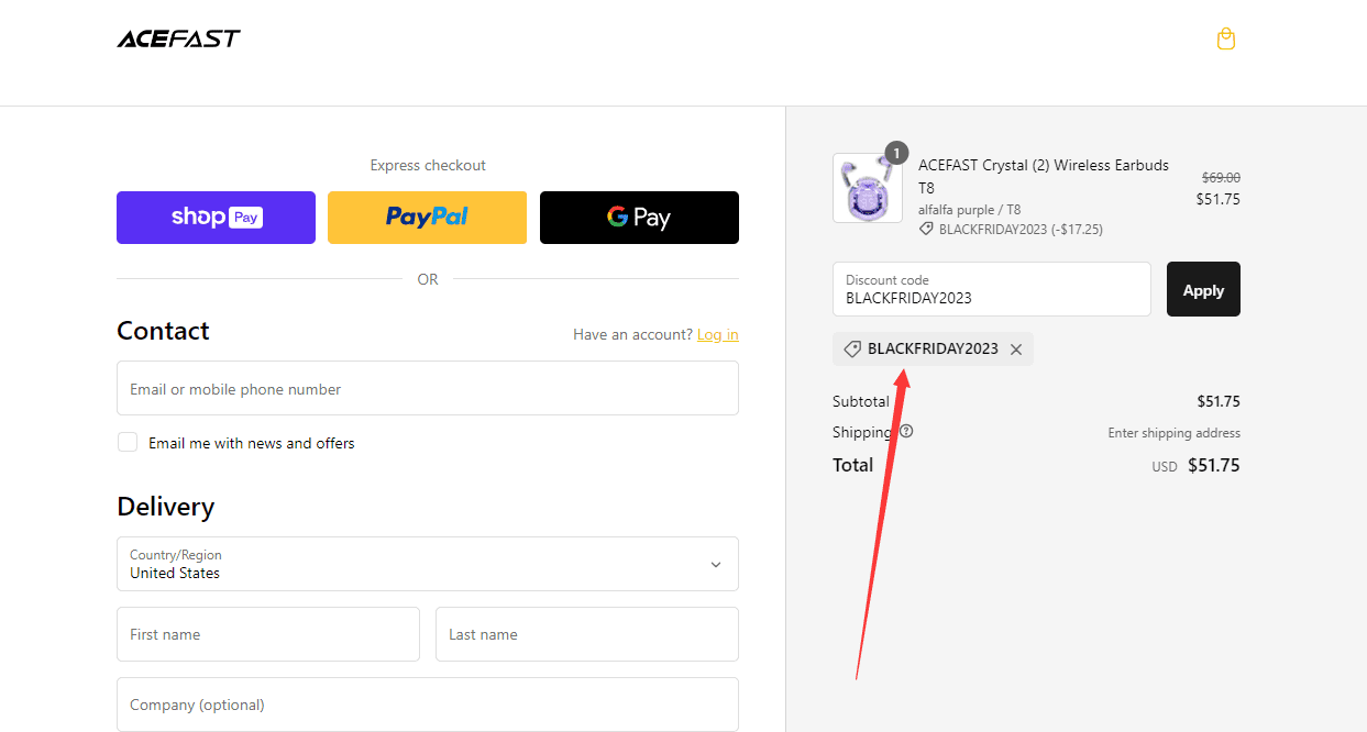 You can fill in the code of "BlackFriday2023" at the checkout like the left image shows, then you will get a discount of 25% off.